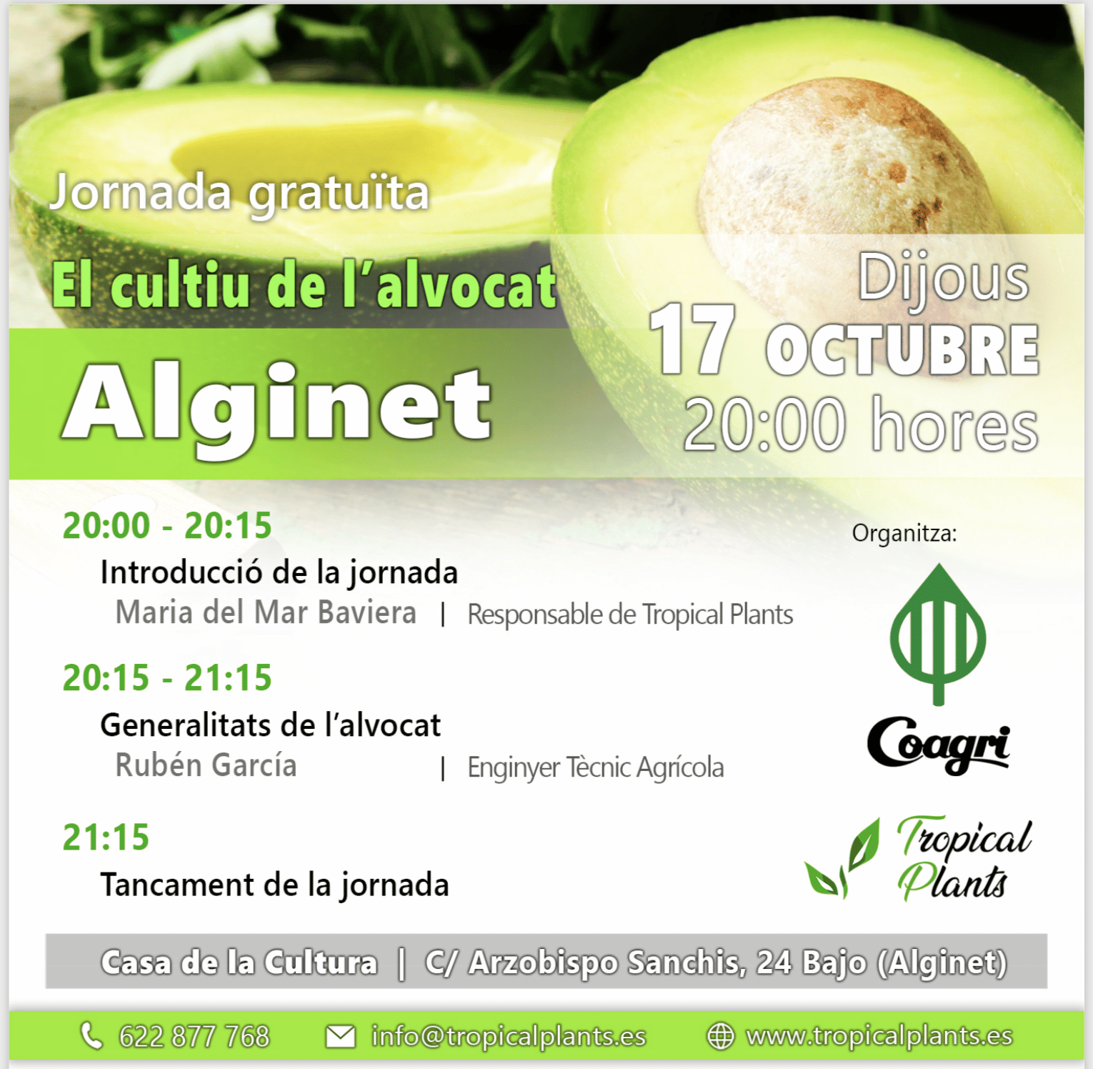 En nuestras continuas jornadas de información y formación Tropical Plants llega a Alginet con la “El cultivo del aguacate”