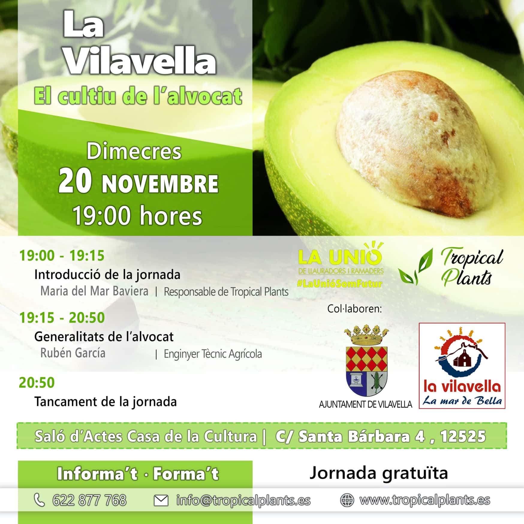 Seguimos con nuestras jornadas del aguacate os invitamos a La Vilavella el miércoles 20 de noviembre de 2019, la Jornada será “El cultivo del aguacate”, como siempre la entrada será gratuita, simplemente debéis inscribiros en el siguiente formulario.